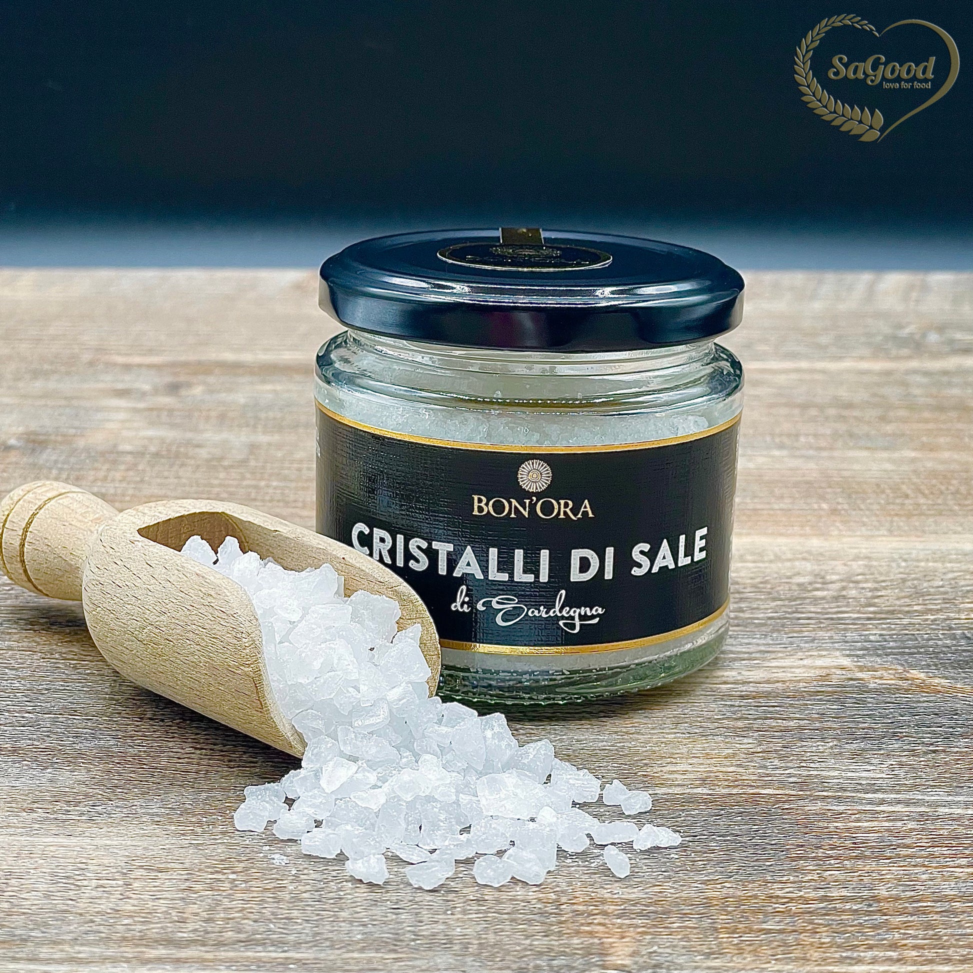Cristalli di sale integrale della Salina di Sant'Antioco naturalmente fini e naturalmente ricchi di oligominerali marini, ottenuti dalla naturale evaporazione dell'acqua di mare, senza alcun trattamento chimico, ideali per qualsiasi piatto o preparazione.