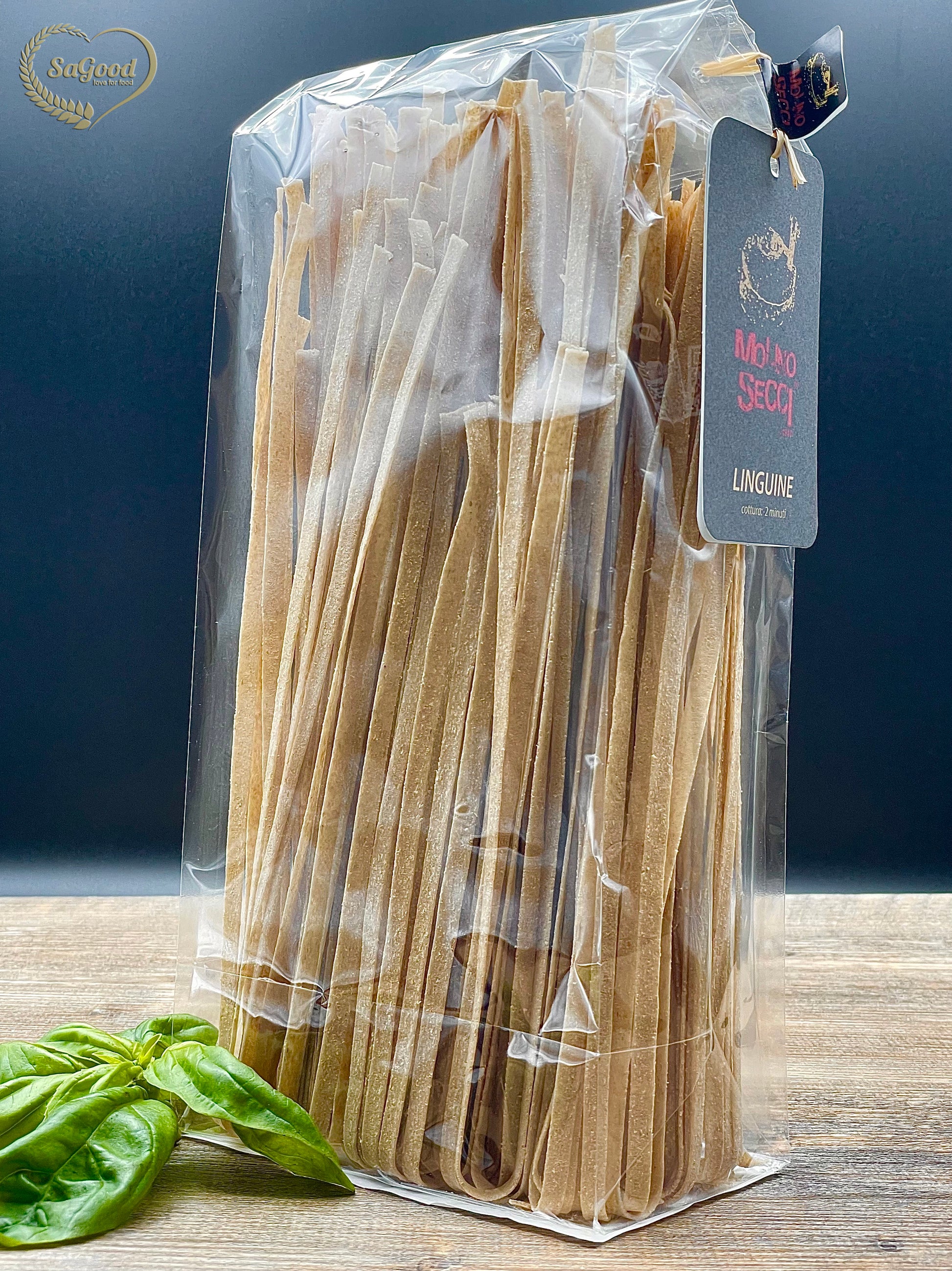 Pasta di semola di grano duro integrale macinato a pietra, ideale per sughi di mare, pesto e sughi ai funghi.