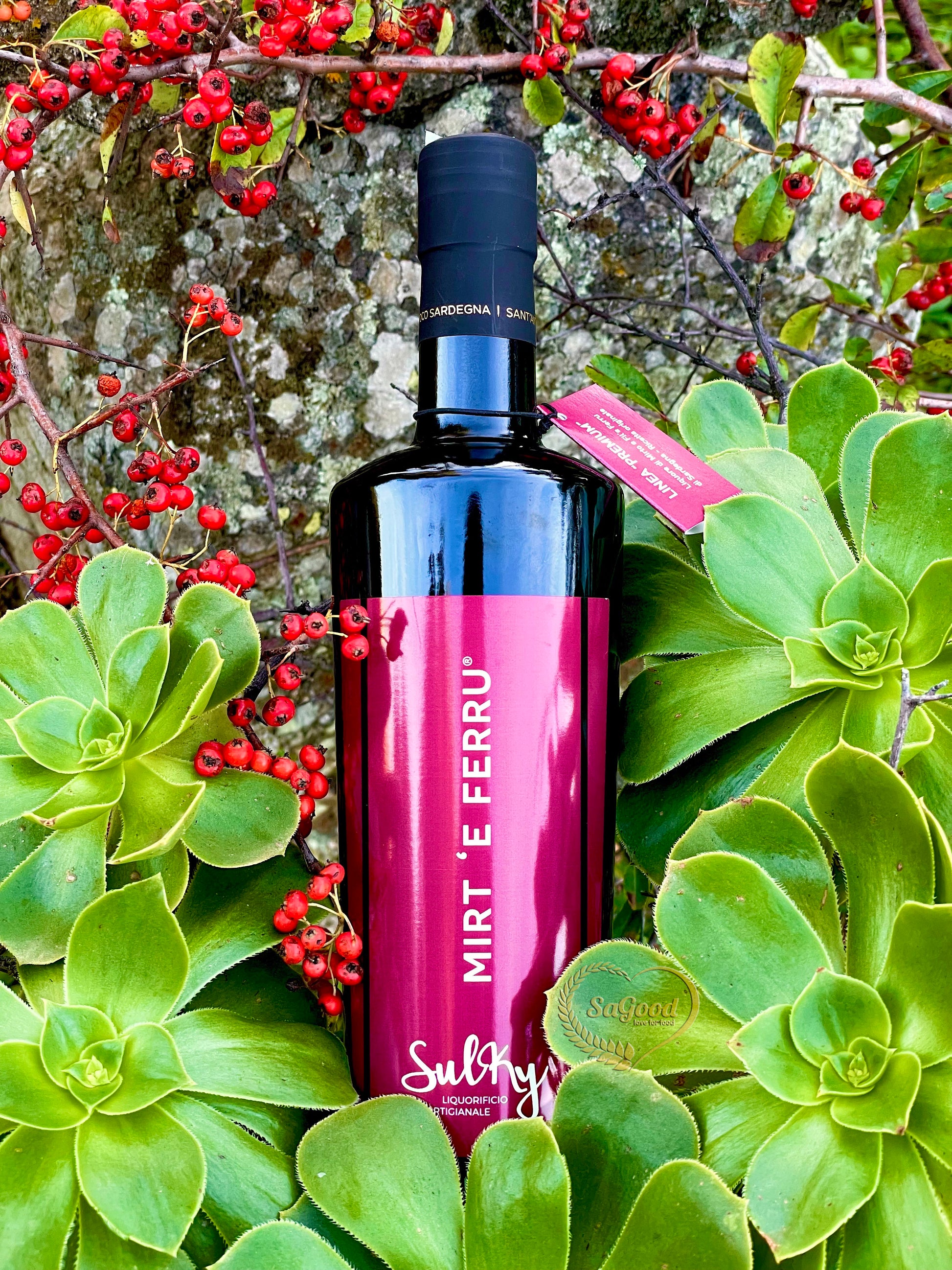 Ingredienti: bacche di Mirto Rosso Biologico 100% sardo, Acquavite di vinacce 100% sarde, alcool 28,5% Vol, acqua, zucchero - senza aromi e coloranti.