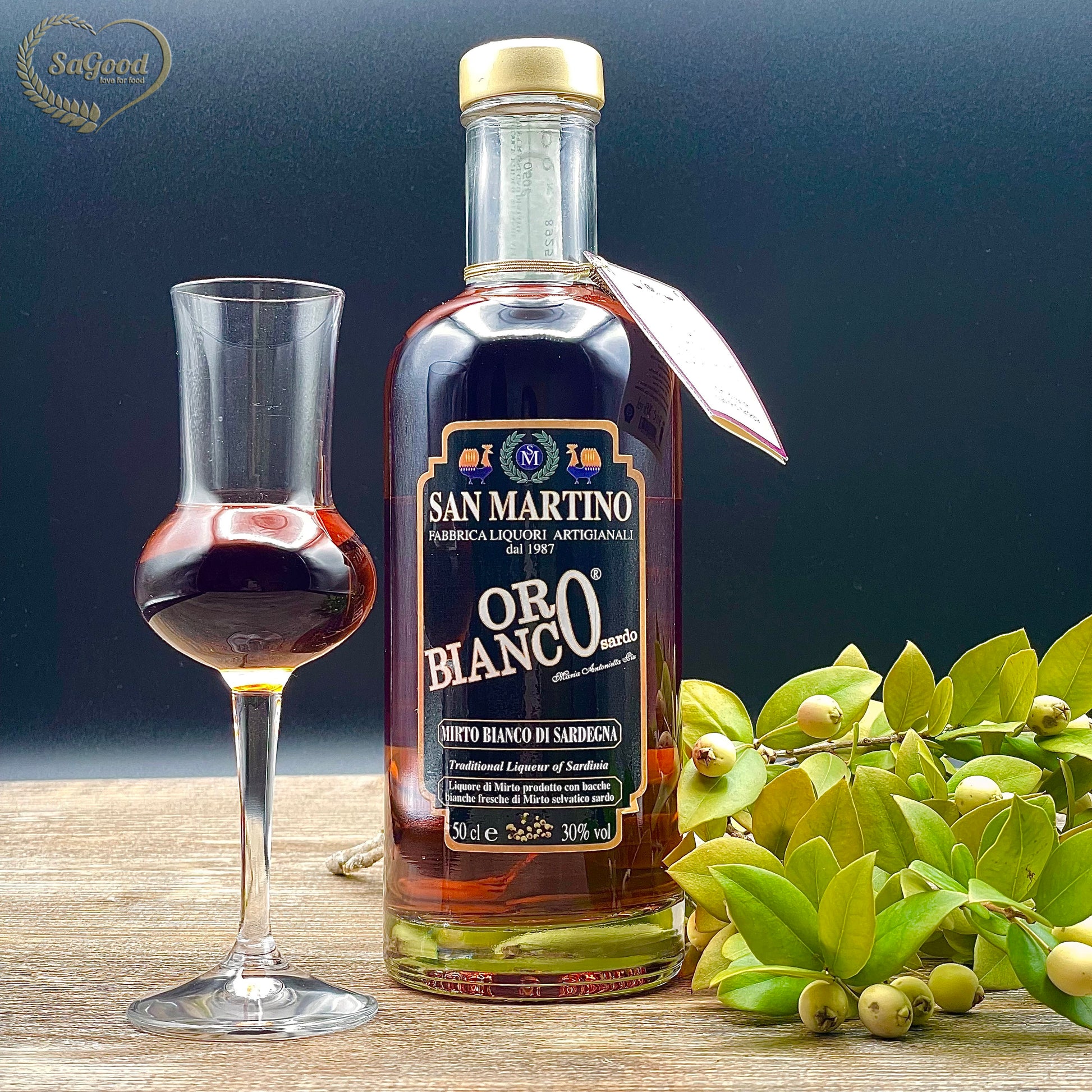 Ingredienti: bacche di Mirto Bianco Selvatico 100% sardo, alcool 30% Vol, acqua, zucchero. - Bottiglia Elite con confezione.