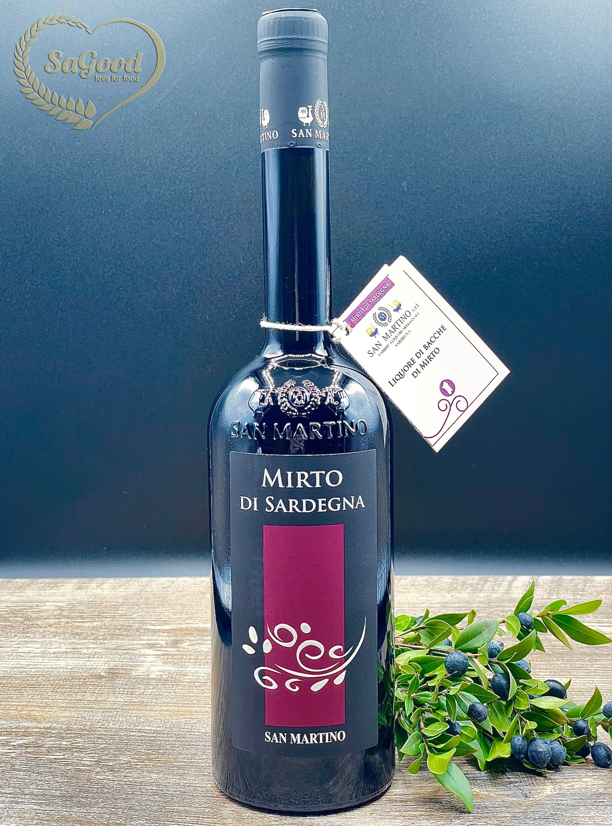 Liquore di Mirto Rosso Selvatico, ottenuto dall'infusione in alcool delle bacche di Myrtus Communis raccolte a mano. Dal gusto e dal profumo unico ed inconfondibile, particolarmente austero e profondo. Ingredienti: bacche di Mirto Rosso 100% sardo, alcool 30% Vol, acqua, zucchero.