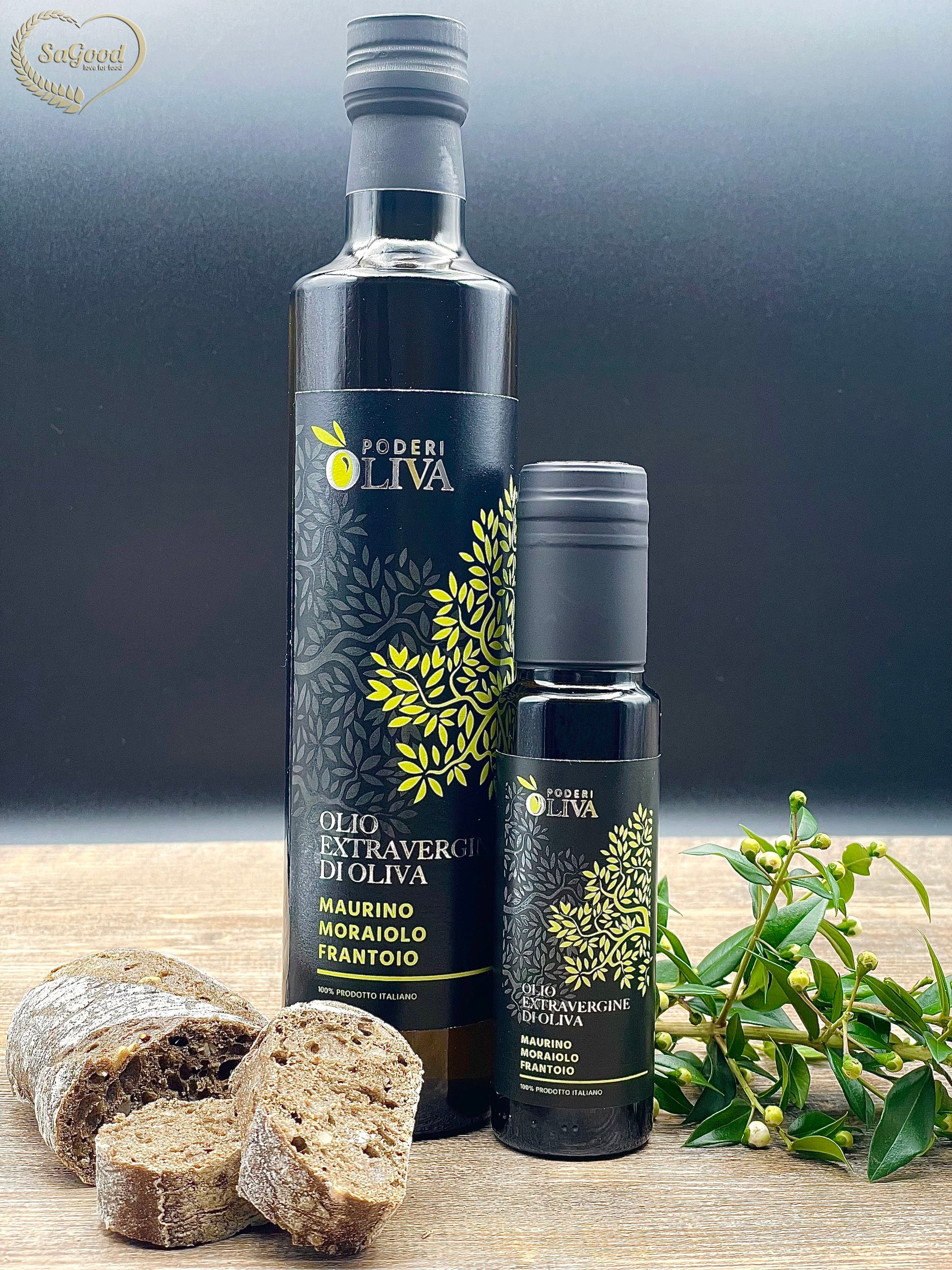 Olio Extra Vergine di Oliva non filtrato ottenuto da olive di qualità Maurino Moraiolo e Frantoio, fruttato leggero dal gusto di oliva fresca con sensazioni di mandorla.